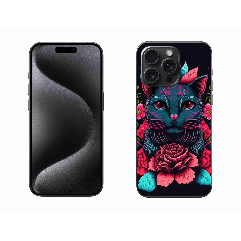 Gél borítás mmCase iPhone 15 Pro Max készülékhez - virágok és macska