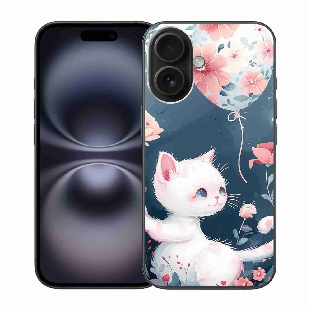 Rugalmas zselés tok mmCase képpel iPhone 16-hoz - cica lufival