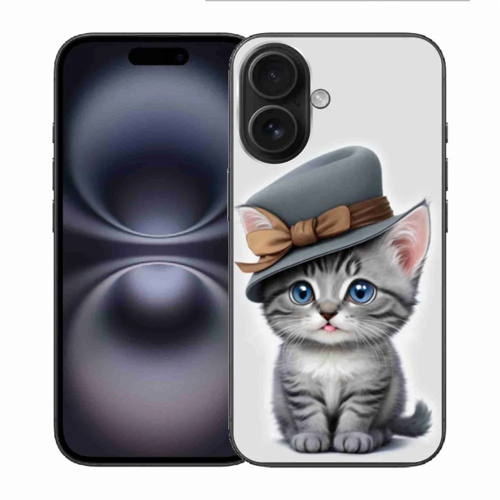 Rugalmas zselés tok mmCase képpel iPhone 16-hoz - cica sapkával