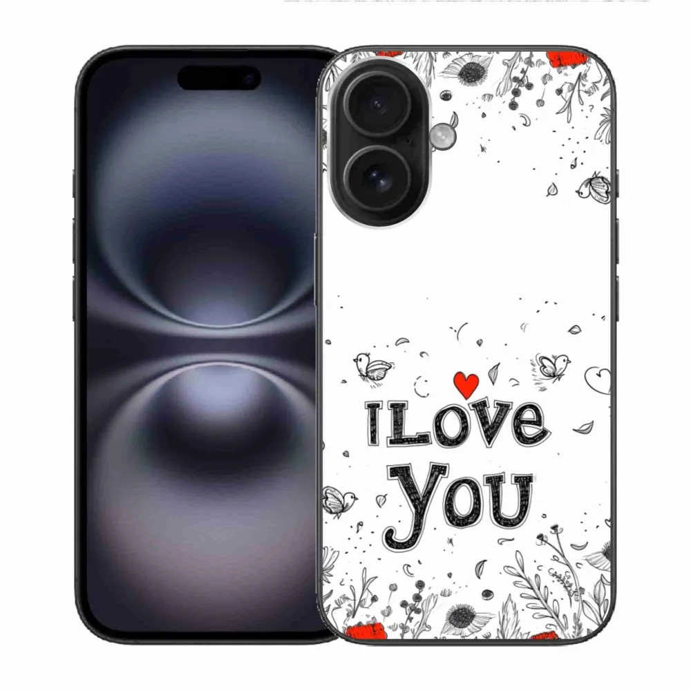 Rugalmas zselés tok mmCase képpel iPhone 16-hoz - I love you fehér háttérrel
