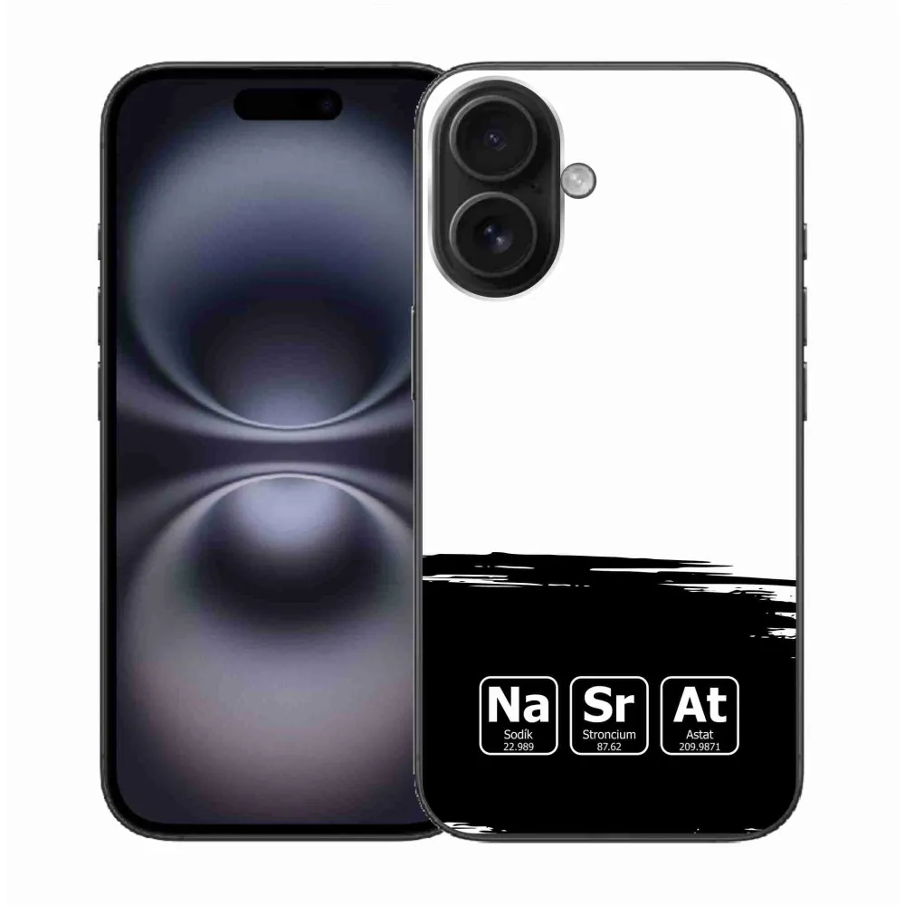 Gél borítás mmCase iPhone 16 készülékhez - kémiai elemek fekete és fehér háttérrel