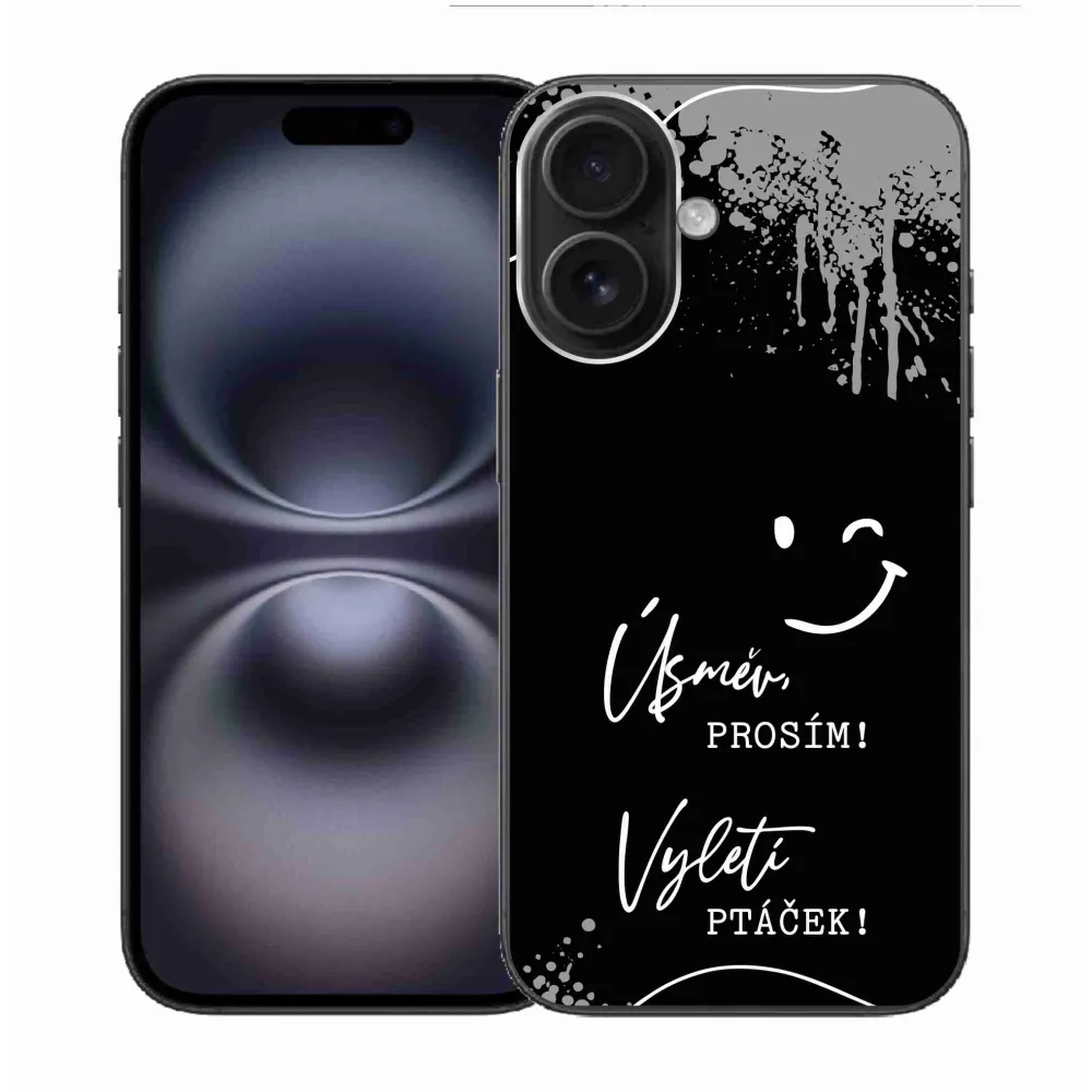 Rugalmas zselés tok mmCase kép iPhone 16 - vicces szöveg 4 fekete háttérrel