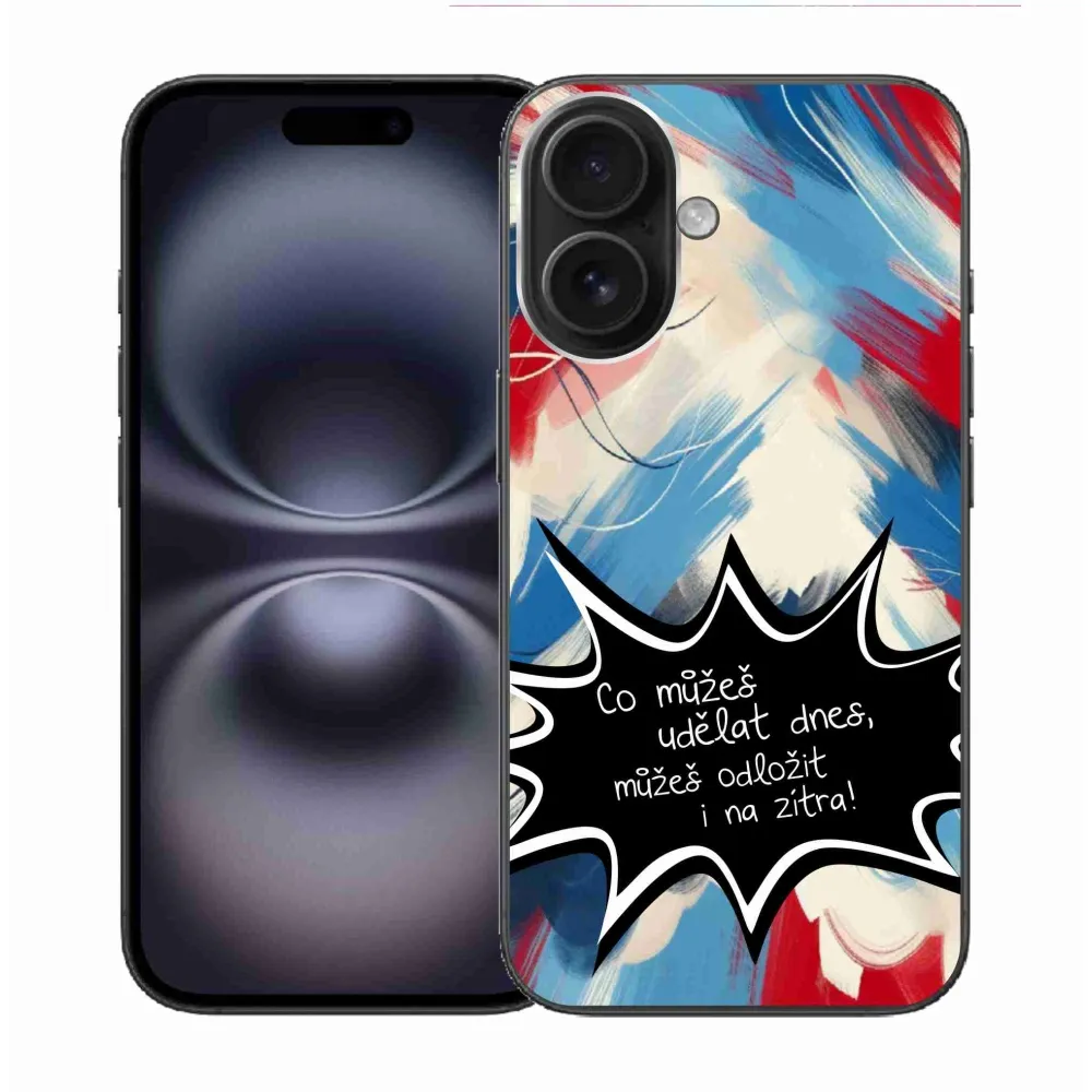 Rugalmas zselés tok mmCase kép iPhone 16 - vicces szöveg 9 fekete háttérrel