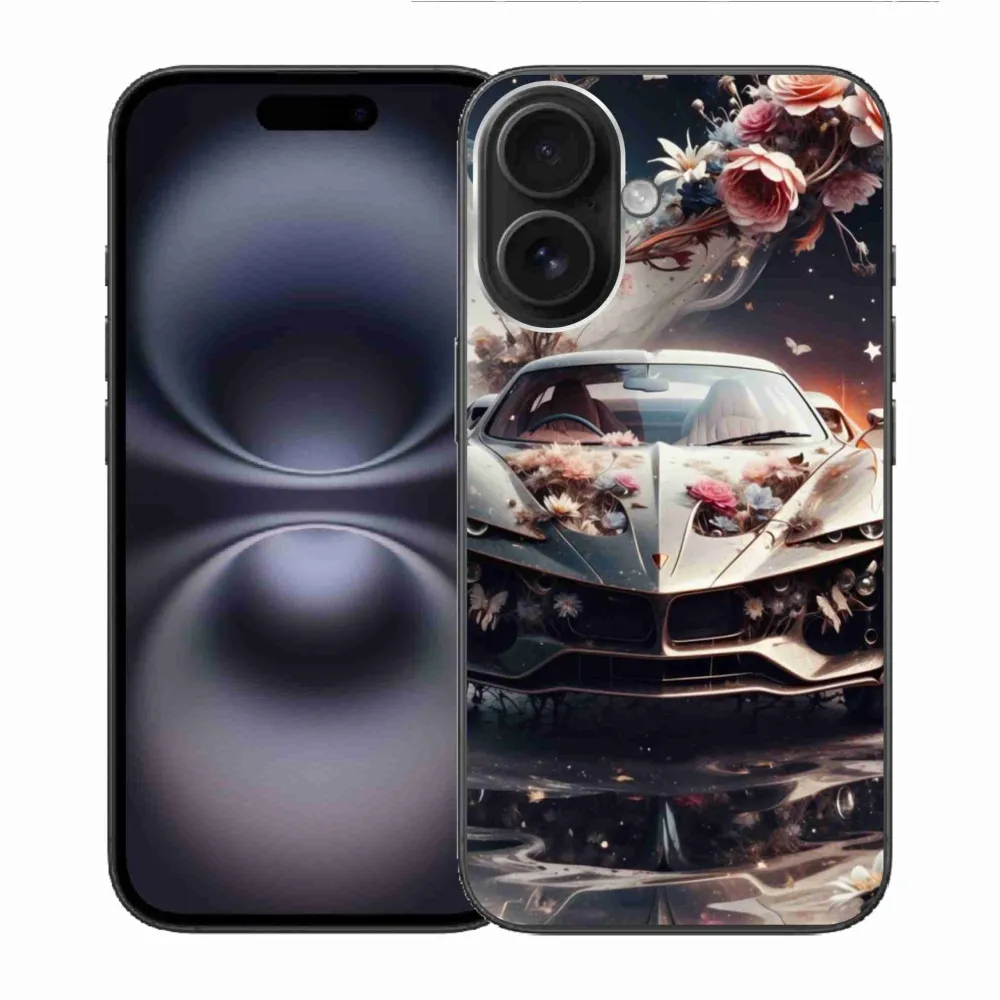 Rugalmas zselés tok mmCase képpel iPhone 16-hoz - virágos sportautó