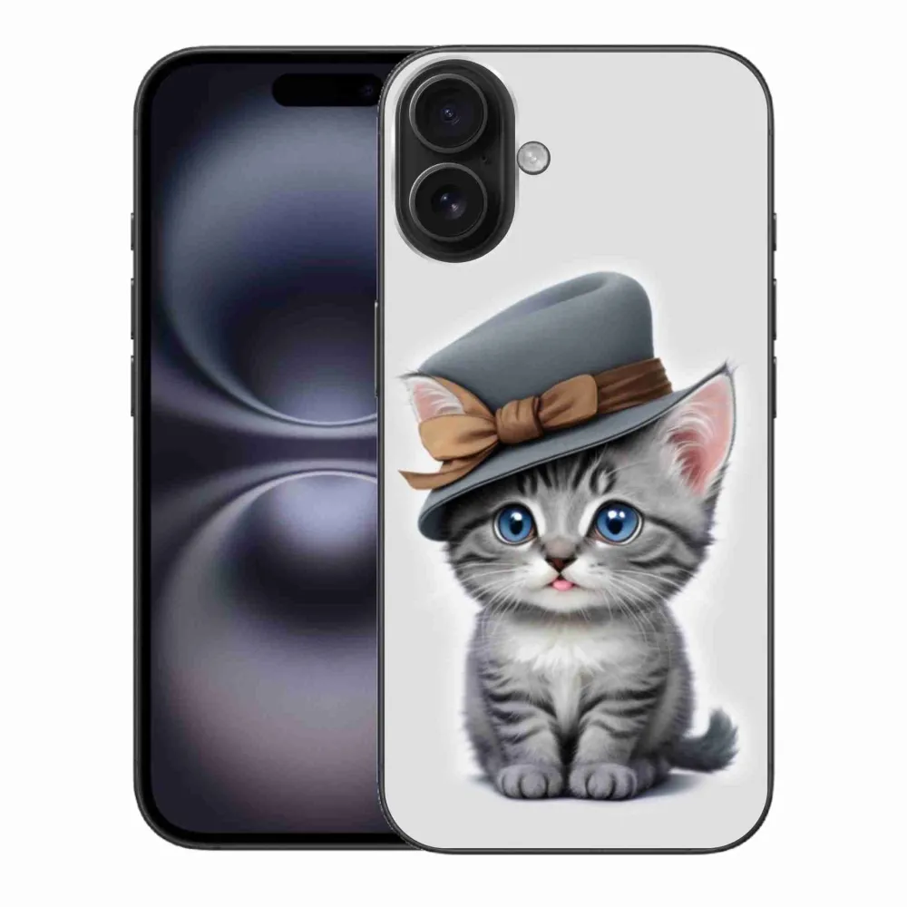 Rugalmas zselés tok mmCase képpel iPhone 16 Plus készülékhez - cica sapkával