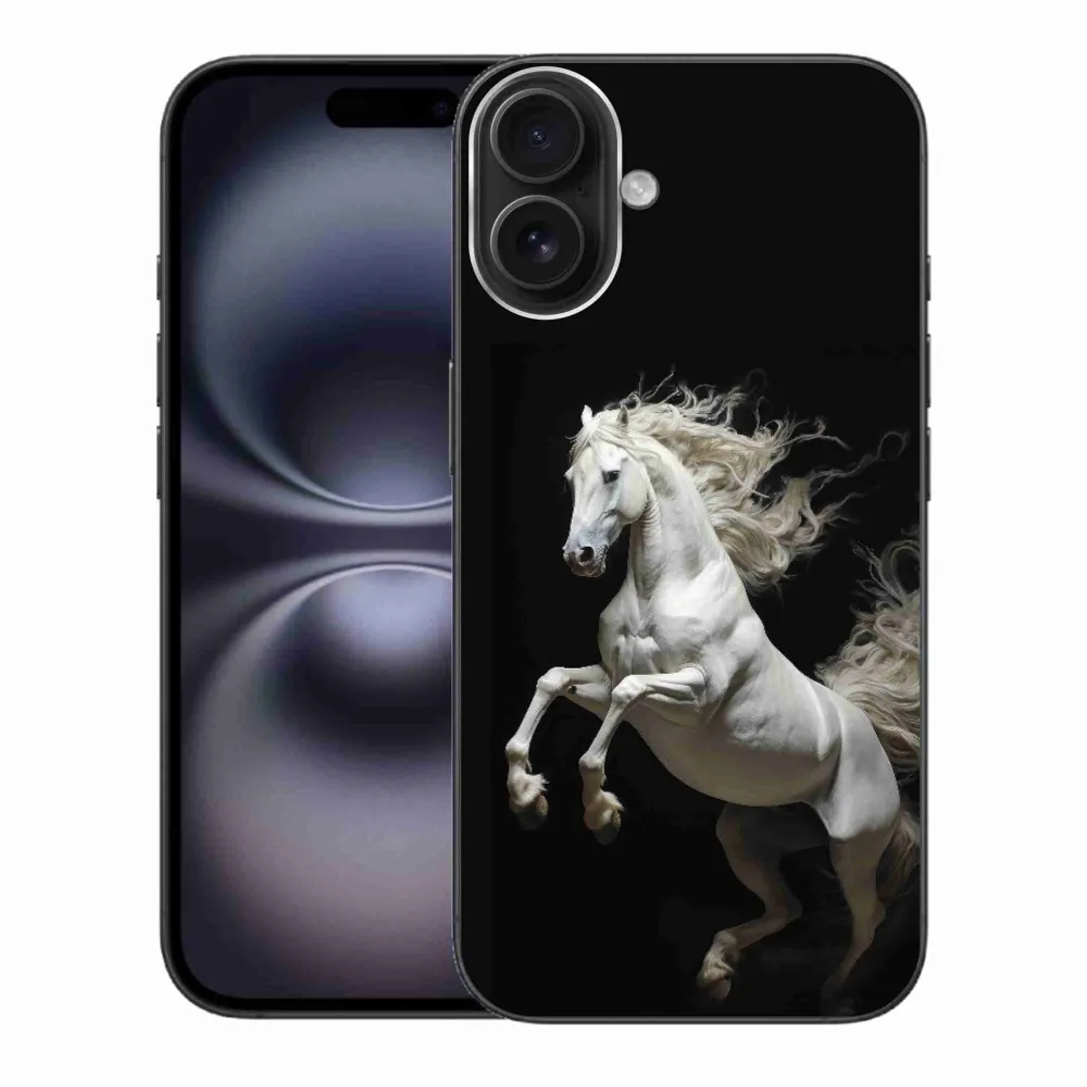 Rugalmas zselés tok mmCase képpel iPhone 16 Plus készülékhez - fehér ló 4