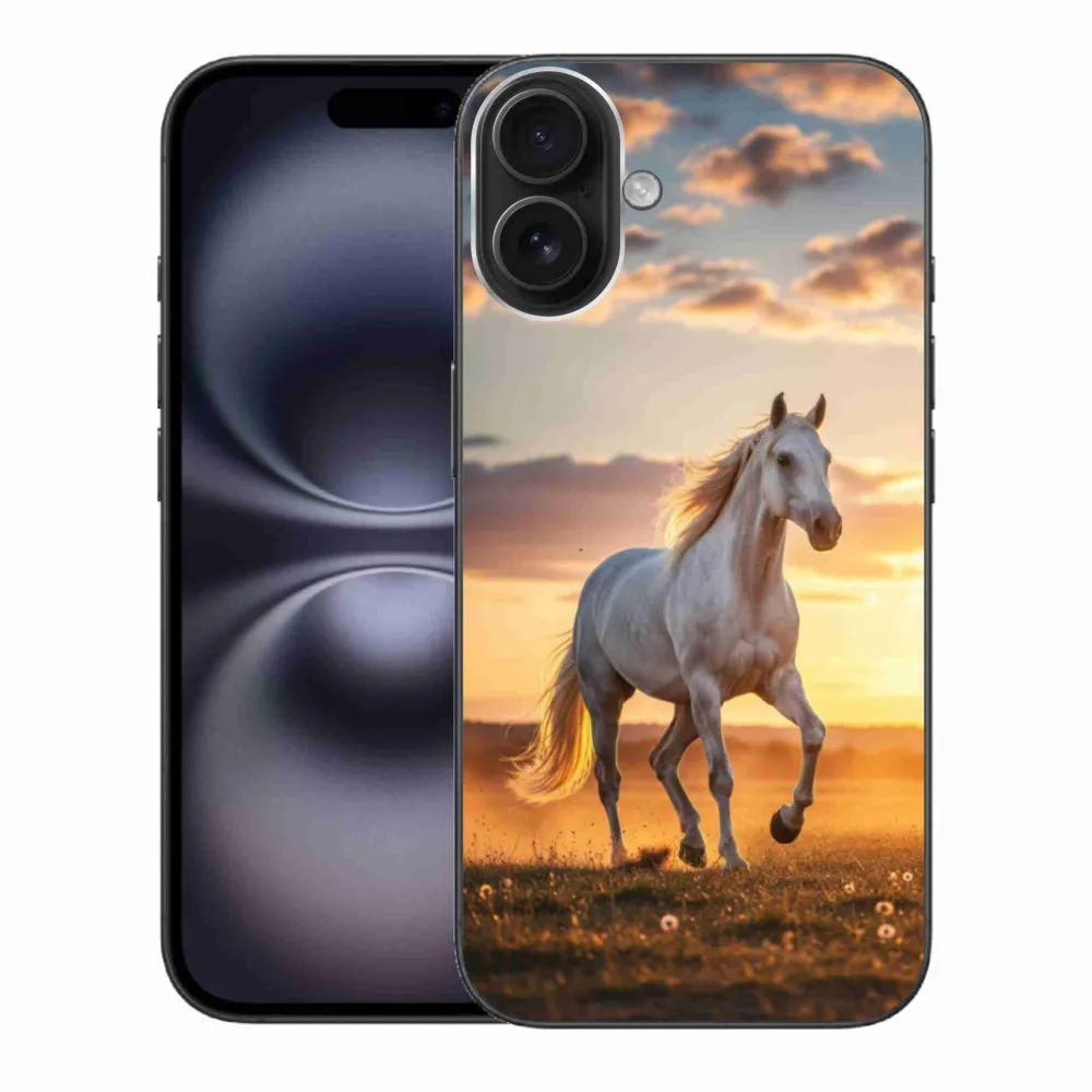 Rugalmas zselés tok mmCase képpel iPhone 16 Plus készülékhez - futó fehér ló 2