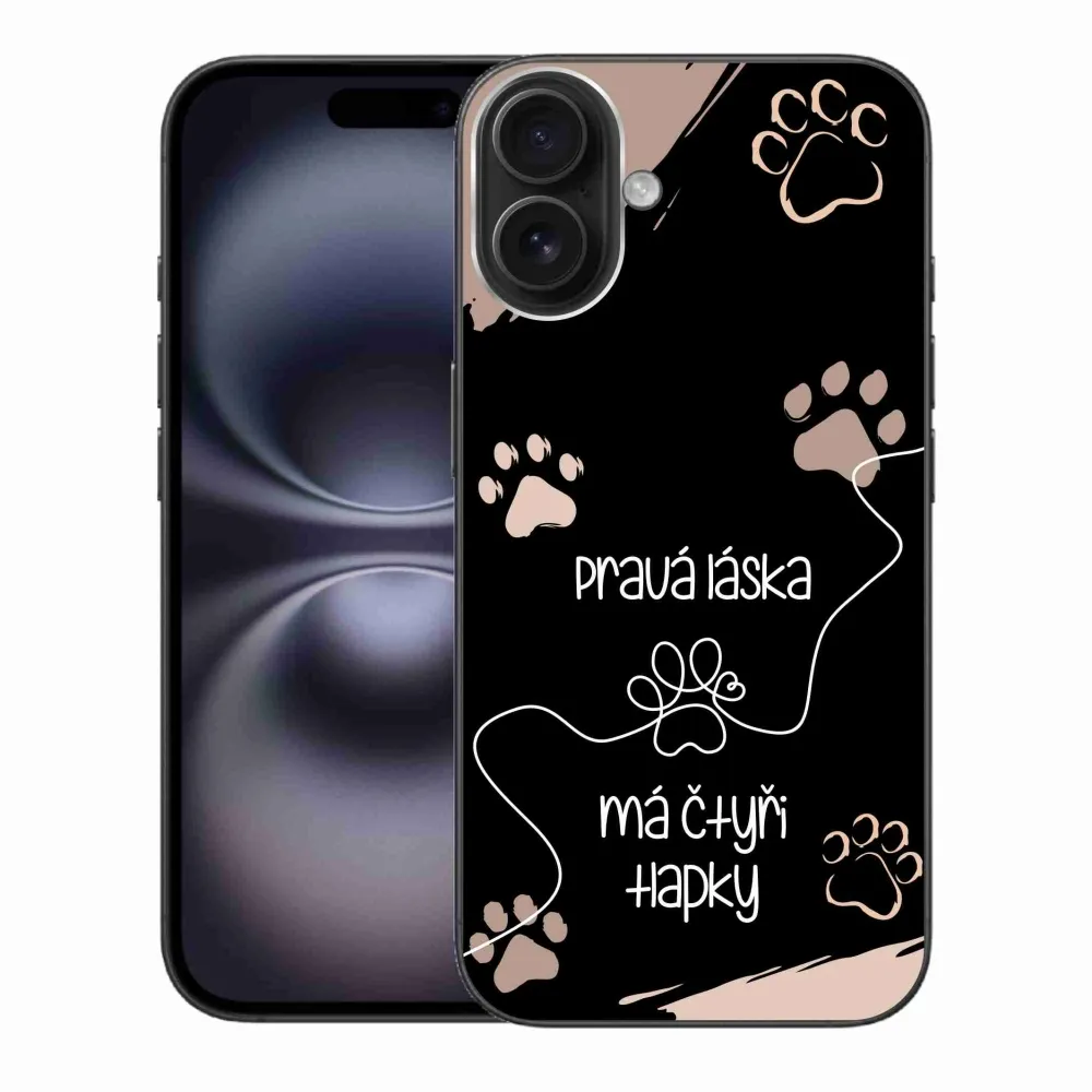 Rugalmas zselés tok mmCase képpel iPhone 16 Plus készülékhez - kutyamotívum 1 fekete háttérrel