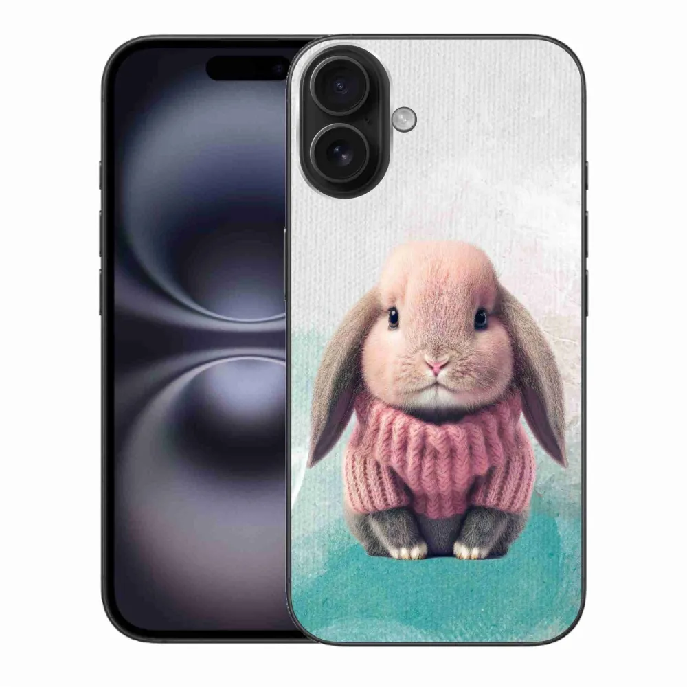 Rugalmas zselés tok mmCase képpel iPhone 16 Plus készülékhez - nyúl pulóverben