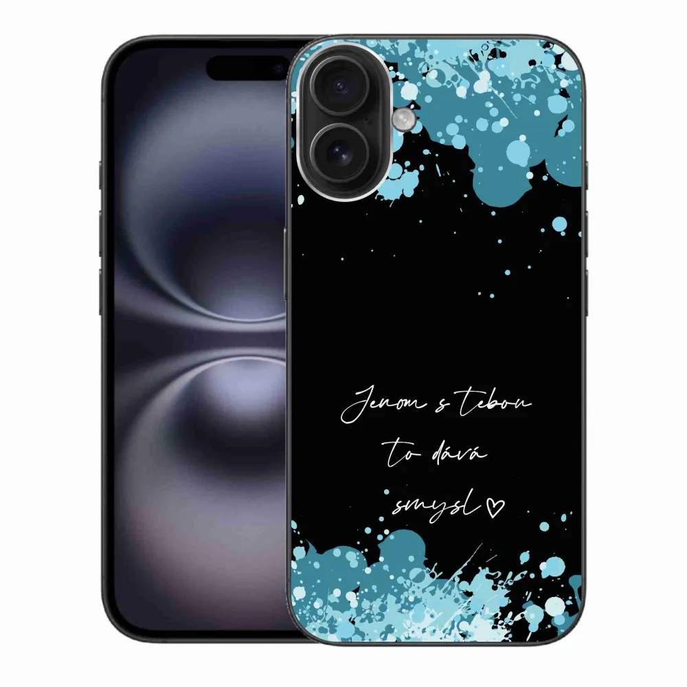 Rugalmas zselés tok mmCase képpel iPhone 16 Plus készülékhez - szerelmes szöveg fekete háttérrel