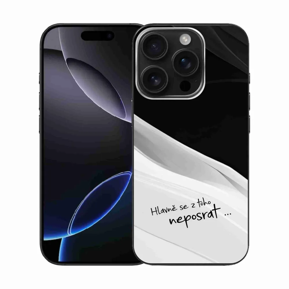 Gél borítás mmCase iPhone 16 Pro készülékhez - vicces szöveg 13 fehér és fekete háttérrel