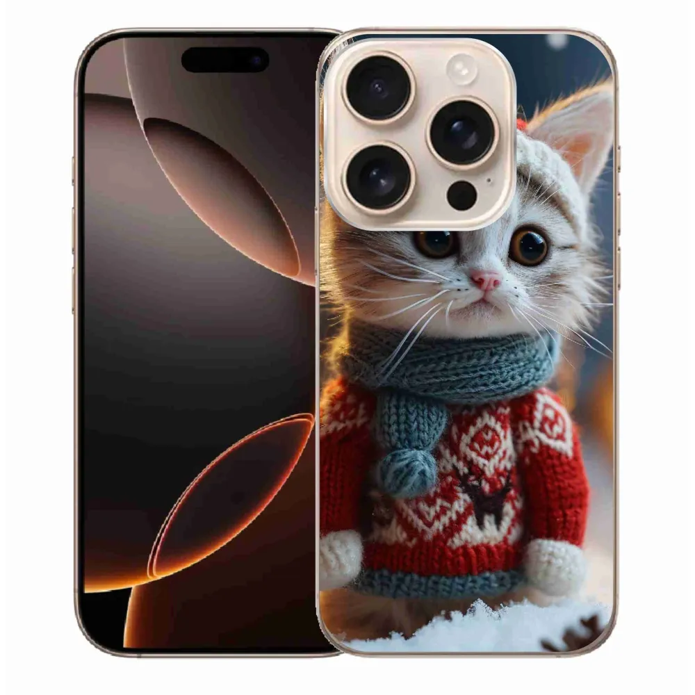 Rugalmas zselés tok mmCase képpel iPhone 16 Pro Max készülékhez - cica pulóverben