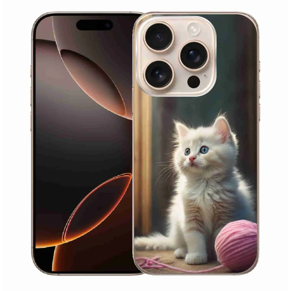 Rugalmas zselés tok mmCase képpel iPhone 16 Pro Max készülékhez - fehér cica 2