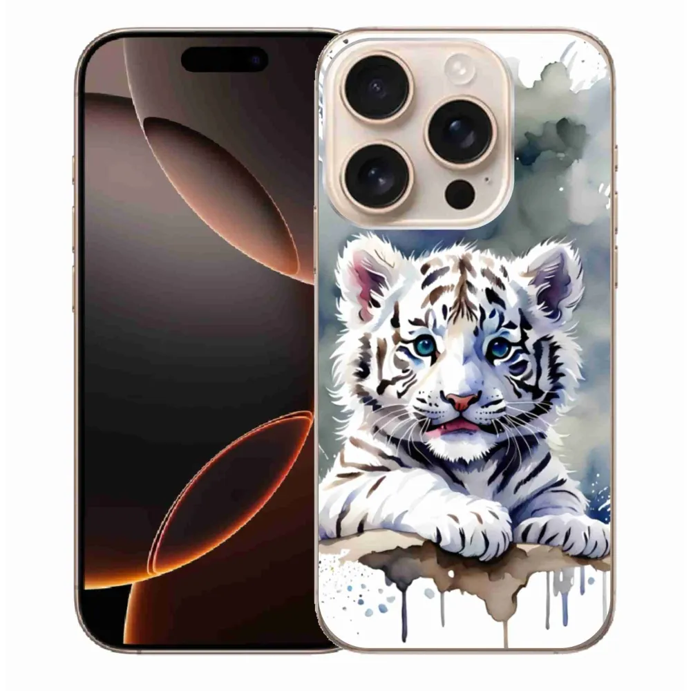 Gél borítás mmCase iPhone 16 Pro Max készülékhez - fehér tigriskölyök