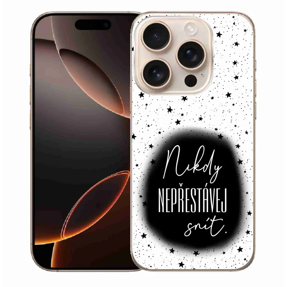 Rugalmas zselés tok mmCase képpel iPhone 16 Pro Max készülékhez - idézet 1 fekete és fehér háttérrel