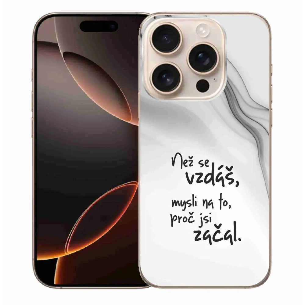 Rugalmas zselés tok mmCase képpel iPhone 16 Pro Max készülékhez - idézet 2 fehér háttérrel