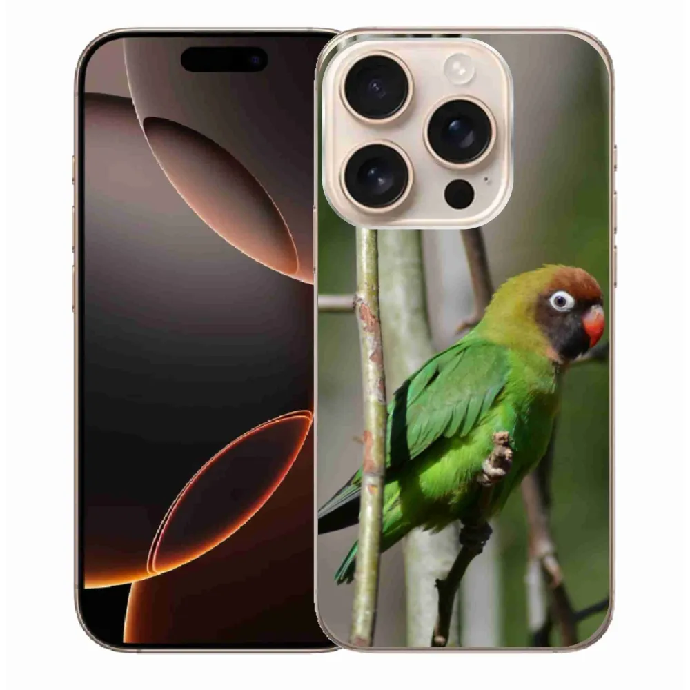 Rugalmas zselés tok mmCase képpel iPhone 16 Pro Max készülékhez - papagáj agapornis