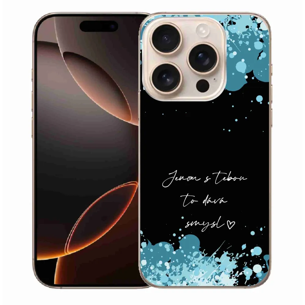 Rugalmas zselés tok mmCase képpel iPhone 16 Pro Max készülékhez - szerelmes szöveg fekete háttérrel