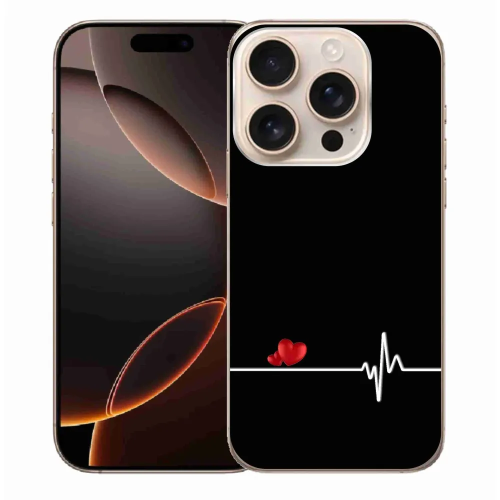 Rugalmas zselés tok mmCase képpel iPhone 16 Pro Max készülékhez - szív és szívverés fekete háttérrel