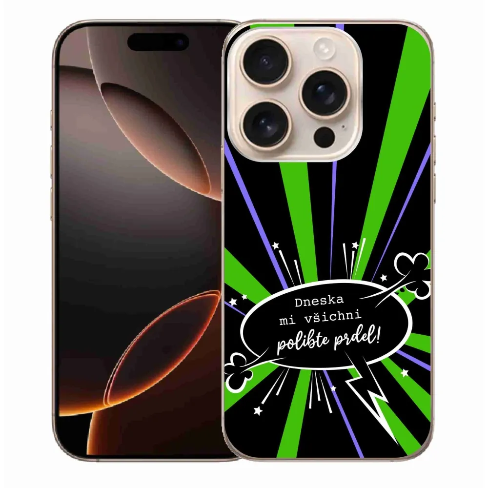 Rugalmas zselés tok mmCase képpel iPhone 16 Pro Max - vicces szöveg 15 fekete háttérrel