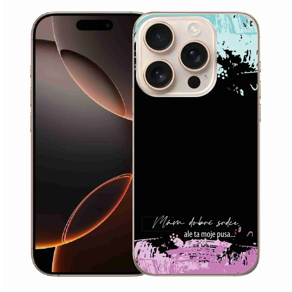 Rugalmas zselés tok mmCase képpel iPhone 16 Pro Max - vicces szöveg 3 fekete háttérrel