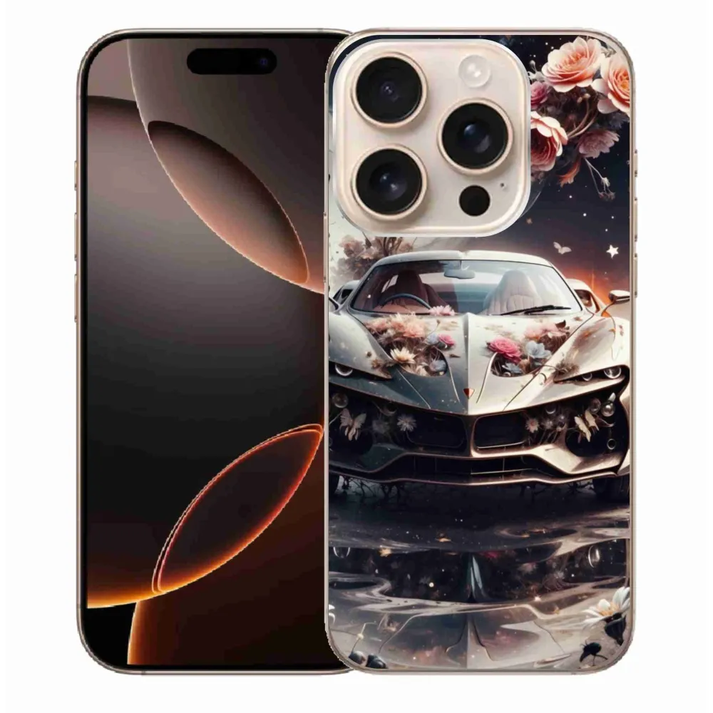 Rugalmas zselés tok mmCase képpel iPhone 16 Pro Max készülékhez - virágos sportkocsi