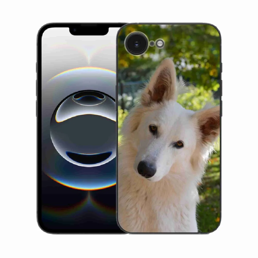 Rugalmas zselés tok mmCase képpel iPhone 16e készülékhez - fehér Svájci juhász 1