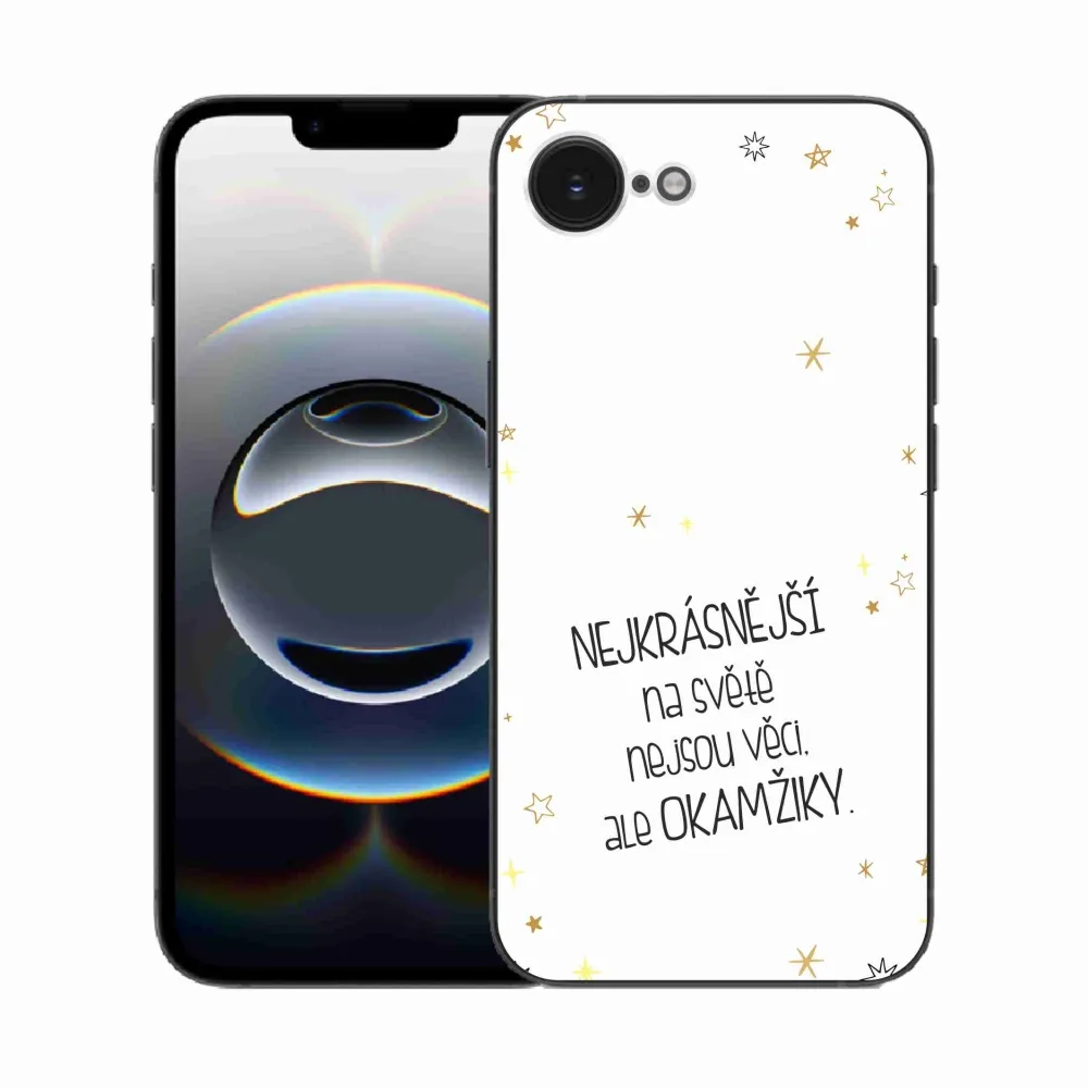 Rugalmas zselés tok mmCase képpel iPhone 16e - idézet 4 fehér háttérrel
