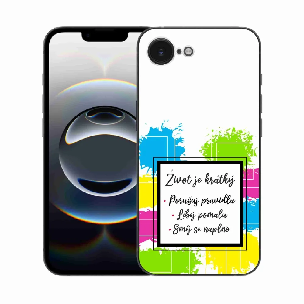 Rugalmas zselés tok mmCase képpel iPhone 16e - idézet 5 fehér háttérrel