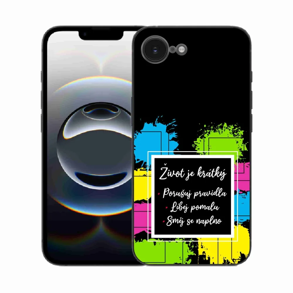 Rugalmas zselés tok mmCase képpel iPhone 16e - idézet 5 fekete háttérrel
