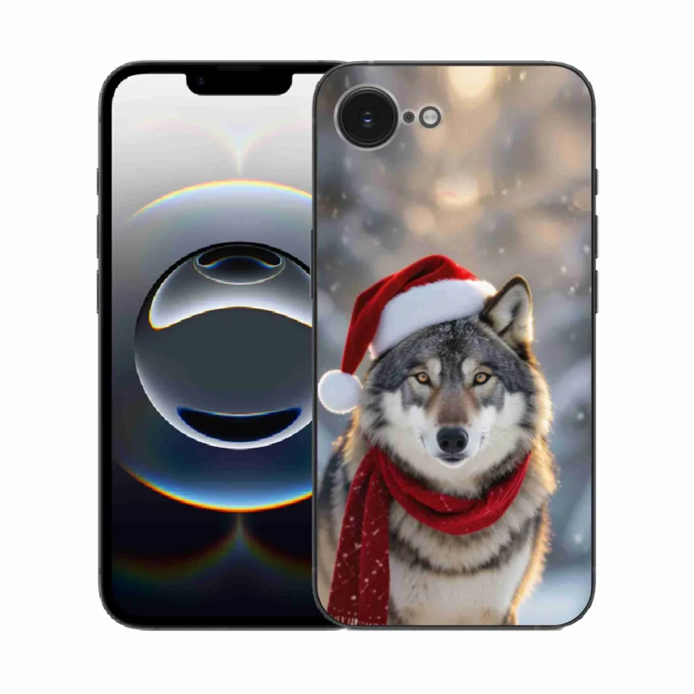 Rugalmas zselés tok mmCase képpel iPhone 16e készülékhez - Karácsonyi farkas