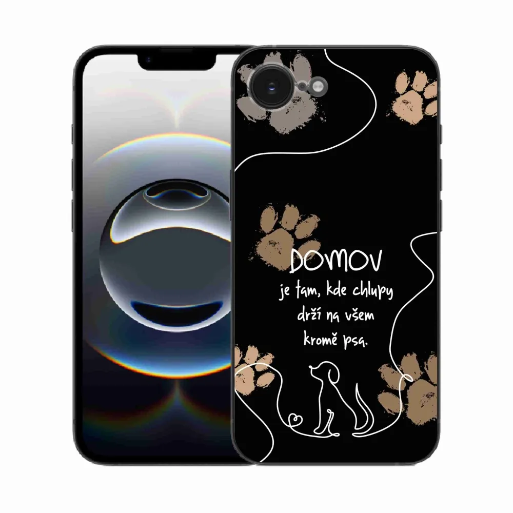 Gél borítás mmCase iPhone 16e készülékhez - kutya motívum fekete háttér