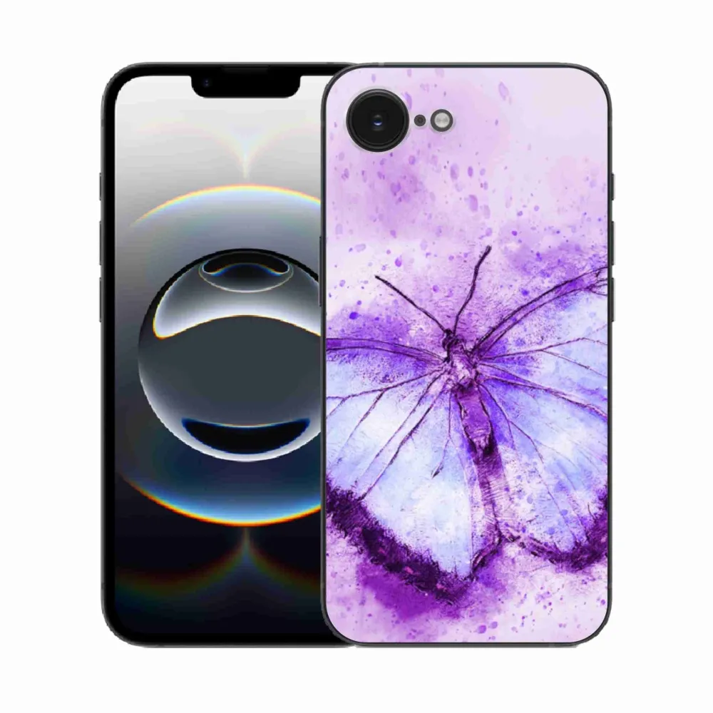 Rugalmas zselés tok mmCase képpel iPhone 16e készülékhez - lila pillangó