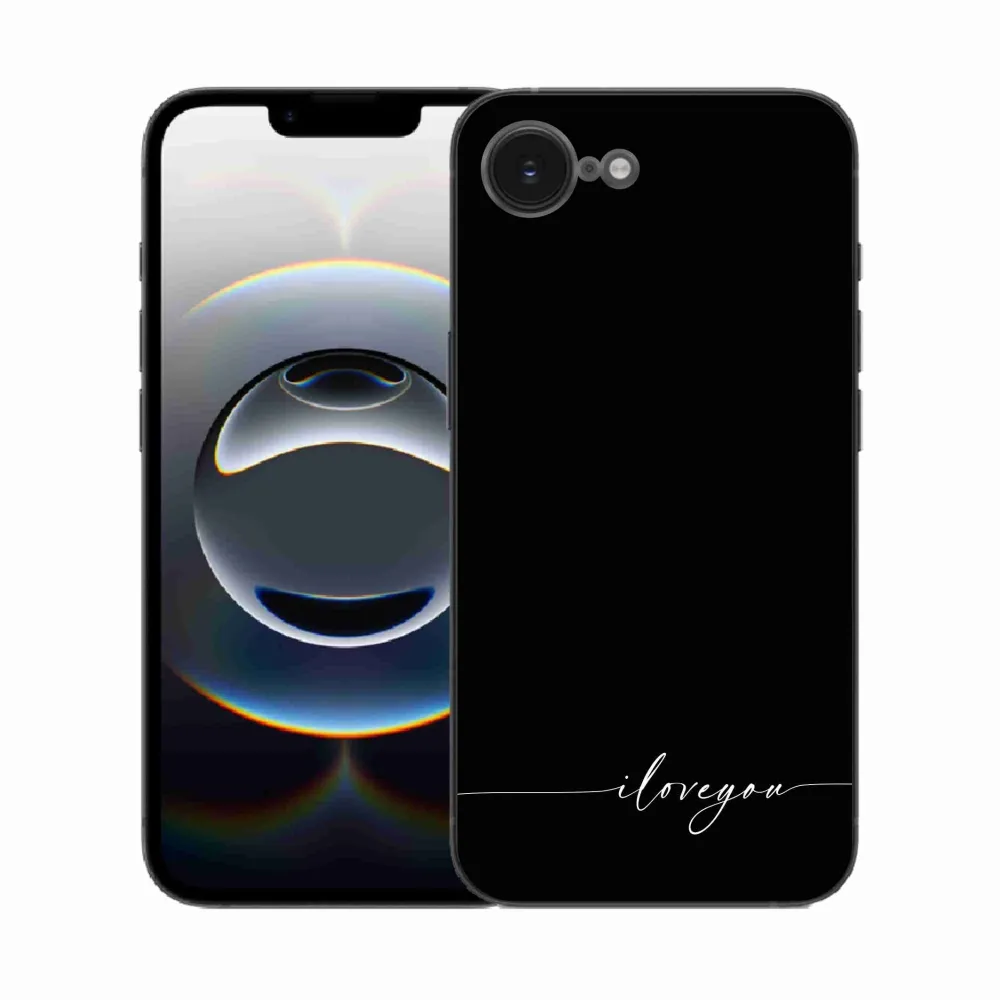 Rugalmas zselés tok mmCase képpel iPhone 16e készülékhez - I love you fekete háttérrel