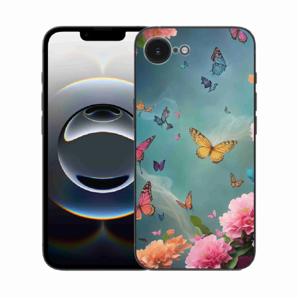 Rugalmas zselés tok mmCase képpel iPhone 16e készülékhez - színes virágok és pillangók
