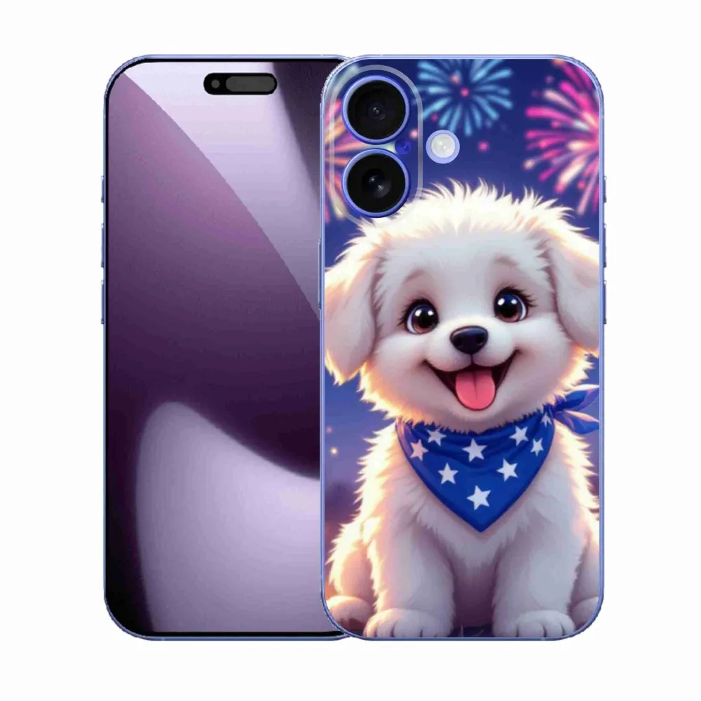 Rugalmas zselés tok mmCase képpel iPhone 17 - ünnepi kiskutya számára