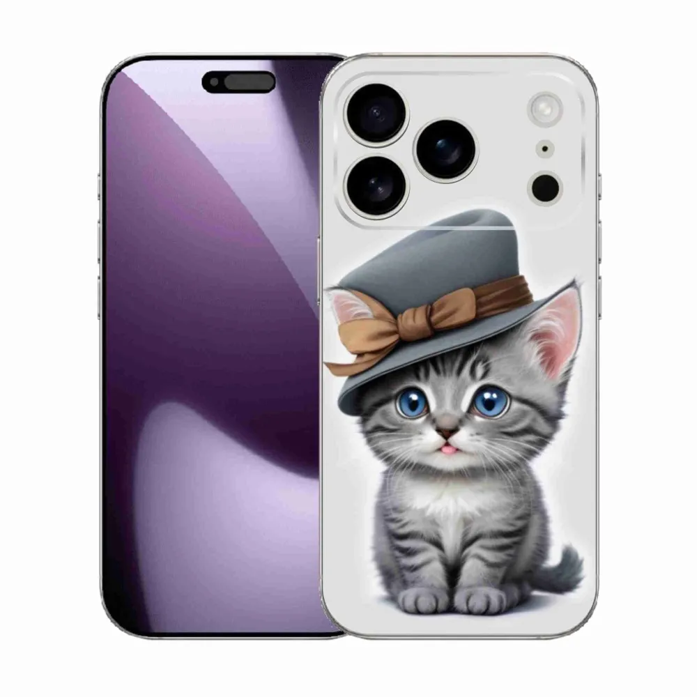 Rugalmas zselés tok mmCase képpel iPhone 17 Pro készülékhez - cica sapkával