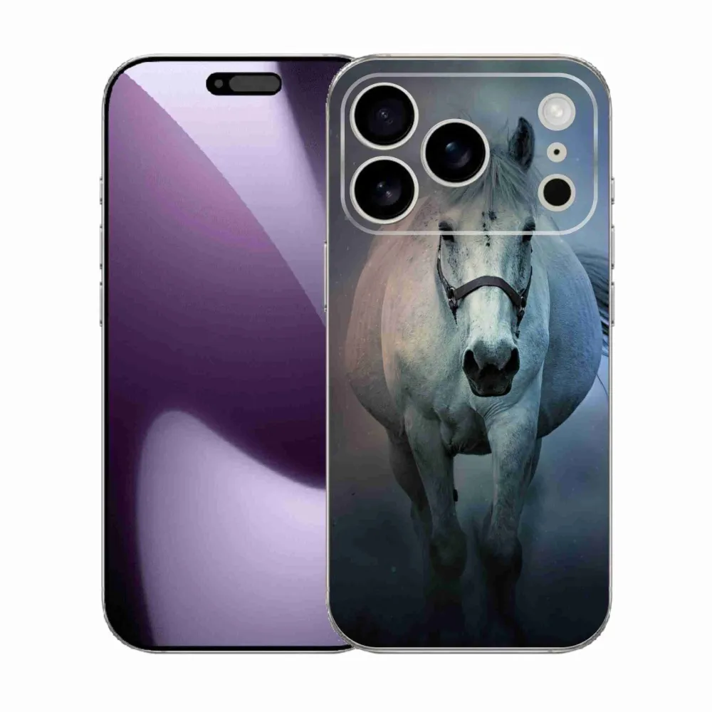 Rugalmas zselés borító mmCase kép iPhone 17 Pro - futó fehér ló - képekkel