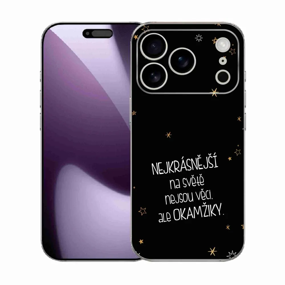 Rugalmas zselés borítás mmCase képpel iPhone 17 Pro - idézet 4 fekete háttérrel