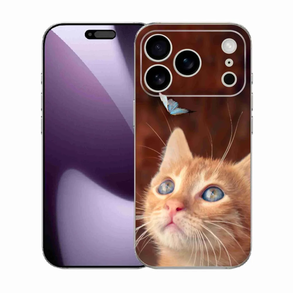 Rugalmas zselés borítás mmCase képpel iPhone 17 Pro - pillangó és cica - képen