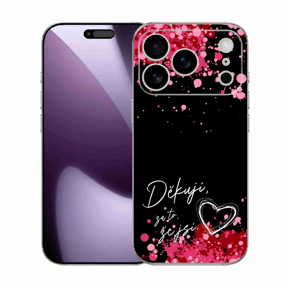 Rugalmas zselés borító mmCase képpel iPhone 17 Pro - szerelmes szöveg 2 fekete háttérrel