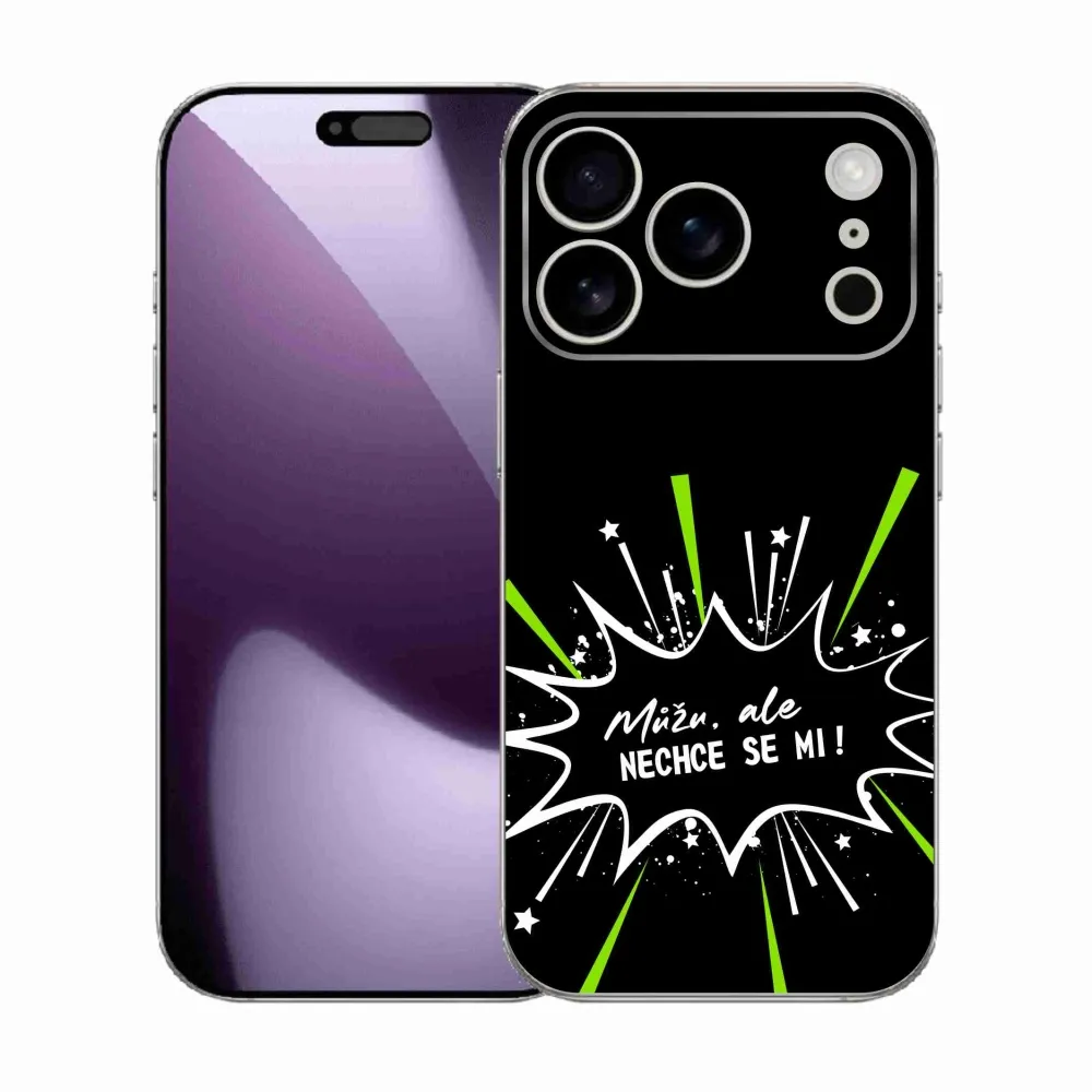 Rugalmas zselés borító mmCase képpel iPhone 17 Pro - vicces szöveg 11 fekete háttérrel
