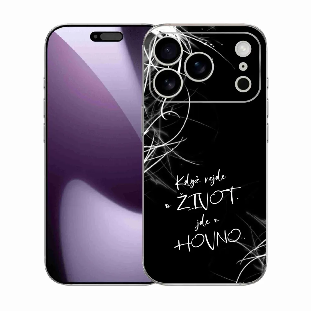 Rugalmas zselés borító mmCase képpel iPhone 17 Pro - vicces szöveg 16 fekete háttérrel
