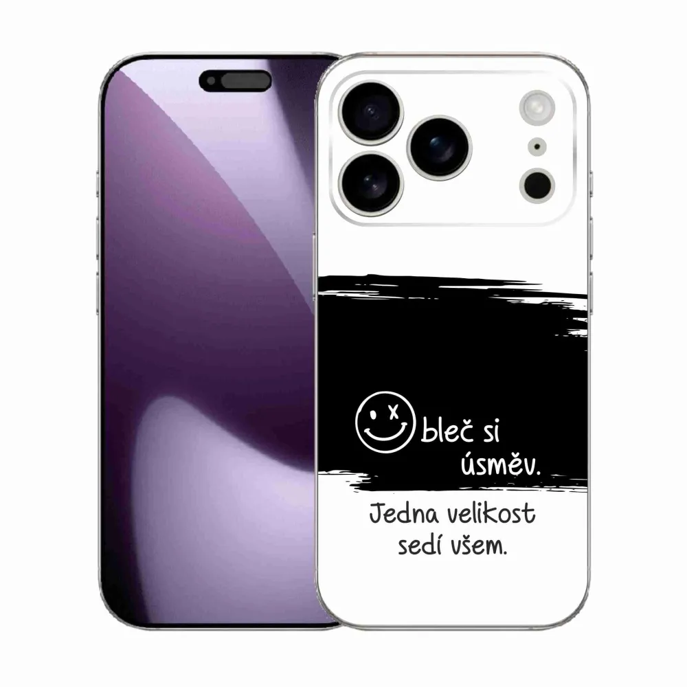 Rugalmas zselés borító mmCase képpel iPhone 17 Pro - vicces szöveg 8 fekete-fehér háttérrel