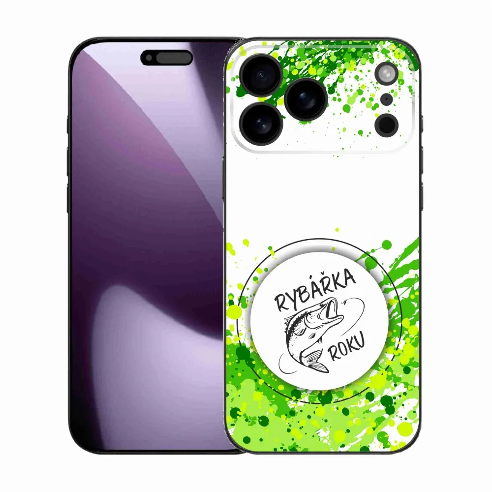 Rugalmas zselés tok mmCase képpel iPhone 17 Pro Max készülékhez - Az év horgásza fehér háttérrel