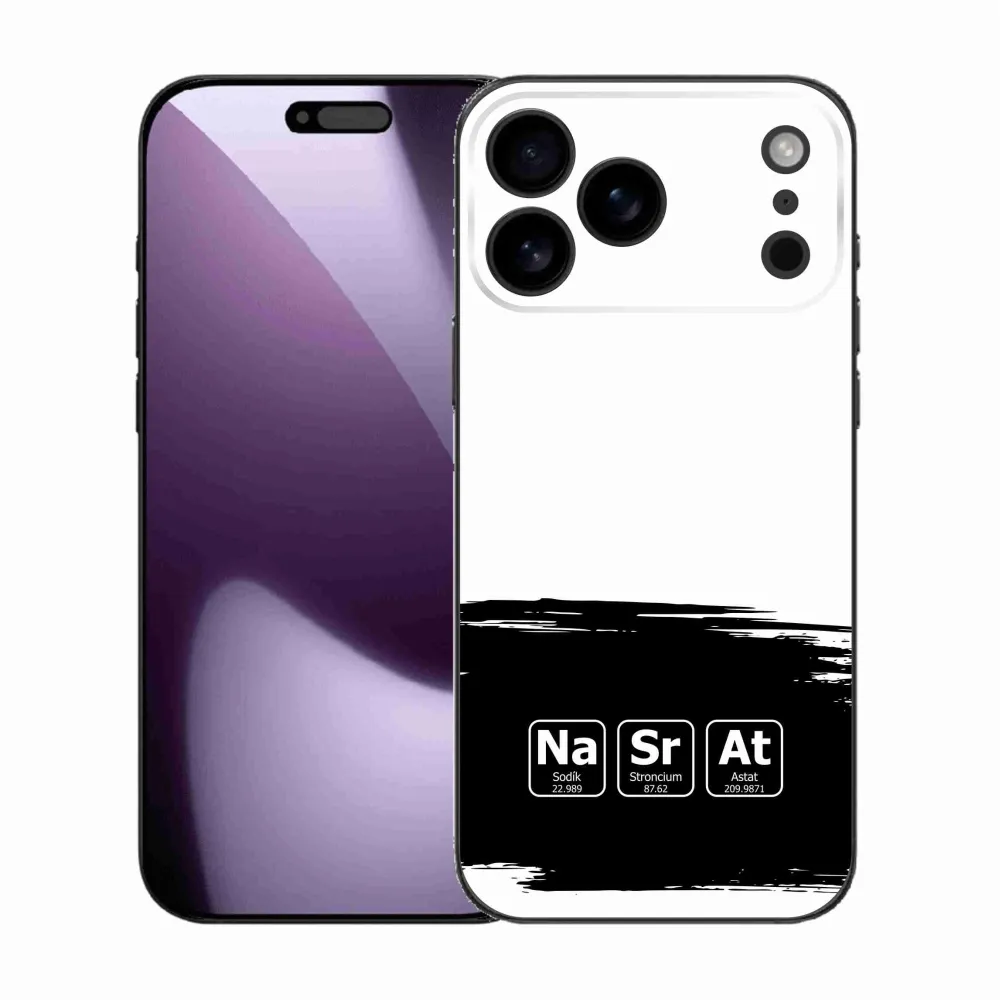 Gél borítás mmCase iPhone 17 Pro Max készülékhez - kémiai elemek fekete és fehér háttérrel