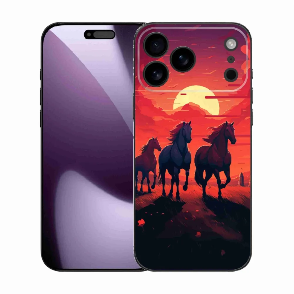 Rugalmas zselés tok mmCase képpel iPhone 17 Pro Max készülékhez - lovak és naplemente