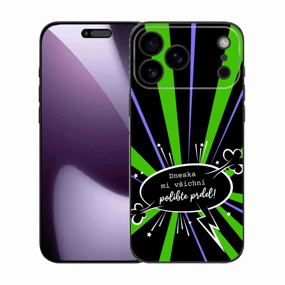 Rugalmas zselés tok mmCase képpel iPhone 17 Pro Max - vicces szöveg 15 fekete háttérrel