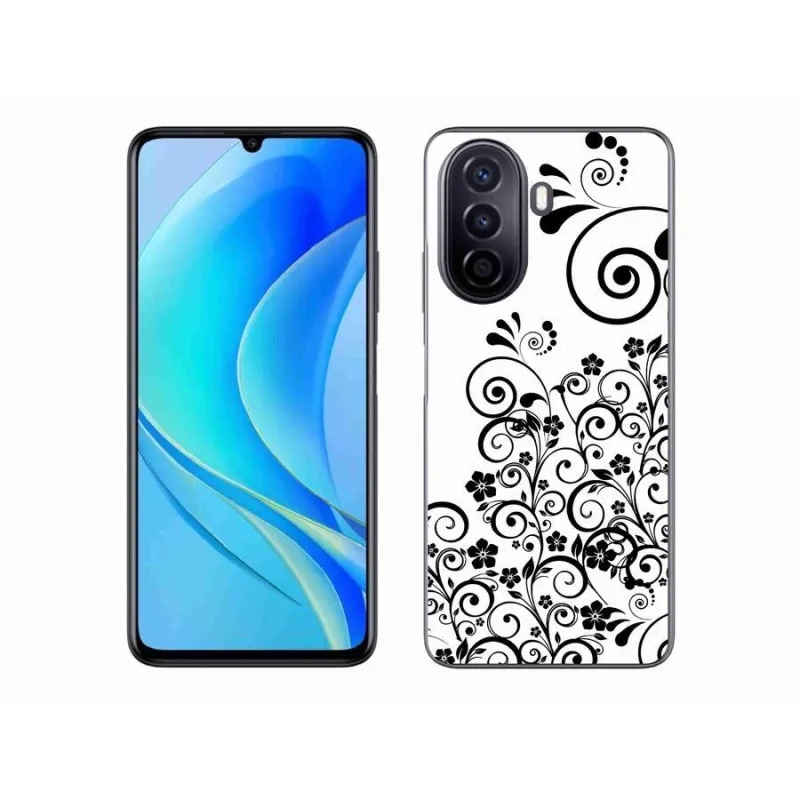 Gél borítás mmCase mobil Huawei Nova Y70 - fekete-fehér virágminták