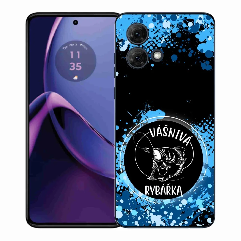Rugalmas zselés tok mmCase a Motorola Moto G84 5G képével - szenvedélyes halásznő fekete háttérrel